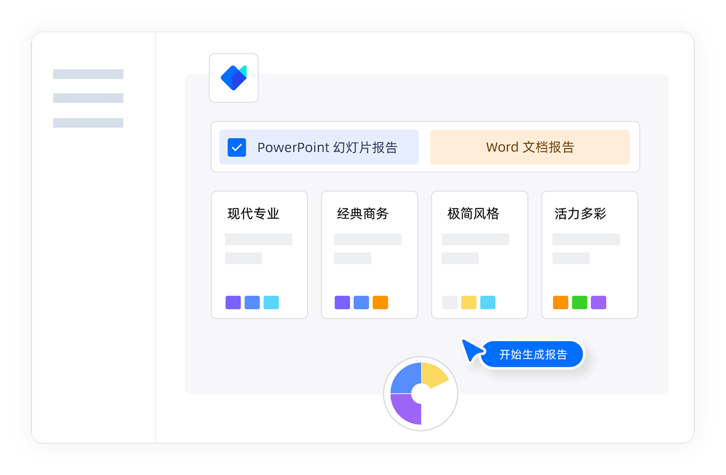 网页、Pdf、PPT、Word等多格式报告自动生成,图表可编辑,素材更符合行业风格。